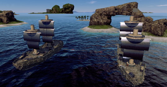 2 fully destructible pirate ships. Eliminate enemy crew to win rounds.