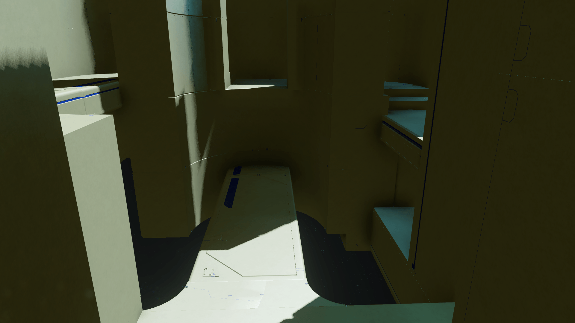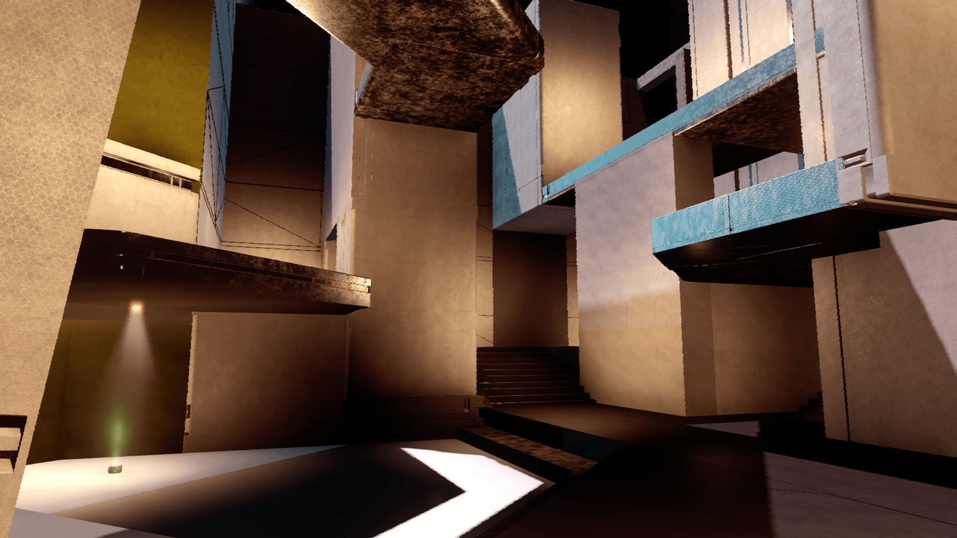 Number four is also unnamed. It's at the earliest stage of the four. The blockout is essentially complete. I'm not sure how far along I'll get on art before the submission date. It has a slightly elongated central atrium, with a path winding around each side of it. It's a relatively linear design. I've always enjoyed linear 1v1 maps that have just enough movement options to keep them from being too predictable, and that's what I'm aiming to create with this one.