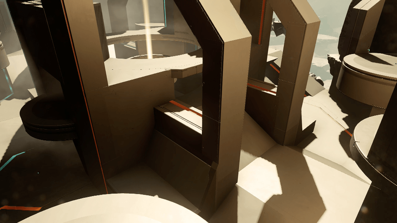 So I figured out what the visual "hook" is gonna be on Precursor. Now I just gotta figure out how to add more character and visual interest to the geometry itself. I've also updated the weapon placement, simplified the "towers" (which aren't even towers anymore), got rid of the two lifts on the low lane, and made the middle beam a central lift.