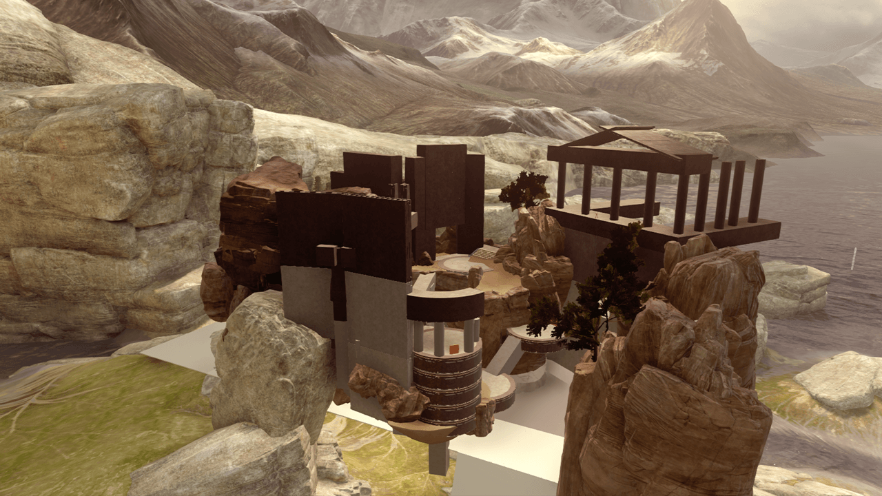 So two things. One, I realized the other day that my maps are all the same. "You mean they're all unfinished?" No. Well yes, but no. Go on any goat map in the last year and a half and you'll notice these things: Larger than life playspaces that make you feel like you're on an adventure. At least one symmetrical setpiece or room that forms the core of the design. 3 unique colors accenting neutral tones (white, brown, black) Some generic object that looks good because it costs way more pieces than it should (doors, bridges, arches, towers, etc.) Spirals. Spirals everywhere. Deceptively simple pathing. Yea I have my own style, but I also keep running into the same problem - the last one. The most challenging thing for me as a designer has been to not make something symmetric and room based. That's difficult when you're working with symmetric rooms and this game's unforgiving spawn system, and I've given up on a lot of themes because **** if I can think of a layout for it. But I feel like I've gotten better at stacking them and making the asymmetry vertical instead of horizontal, which helps avoid inverse symmetry, but i still dont like sitting on themes that dont have interesting layouts. Which brings me to my second point. I scrapped the map I was doing because I can do better, so I'm blocking something with the shame general shape out. And yes it's @Dunco's fault.