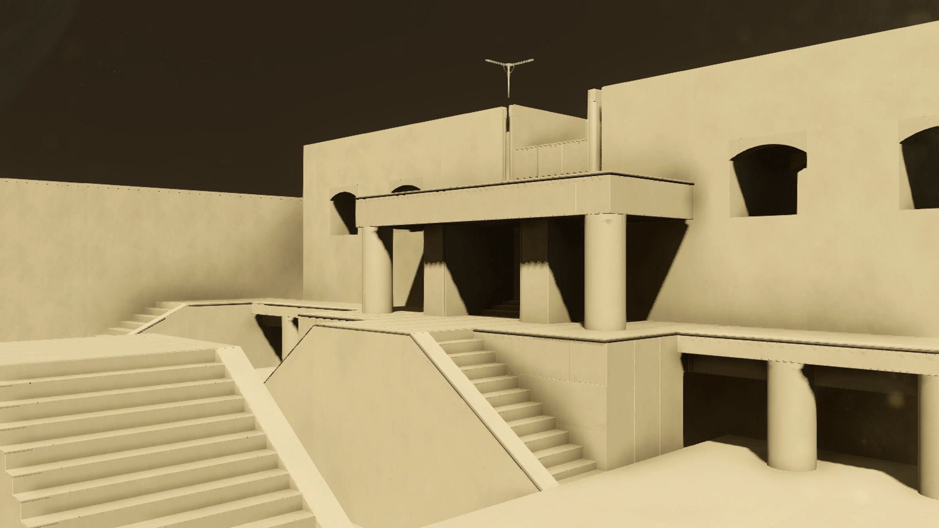 I finally got to design the map that I've been trying to do so for the longest time now. My objective for this map was to design a map that didn't have a high central structure i.e. no top mid. Alongside that I wanted to create an asymmetrical map that didn't have any outside walls. Also I wanted multiple towers on the map to create vertical gameplay. What I ended up with is a mixture of my H4 map Salem II and my H2A map Eden and some new stuff. The colorization is temporary as well as the style, although I'm liking the sandtrap style for this design. I really hope that I get around to build this map in forge sometime. I'll try to get some more pics up tomorrow or something.