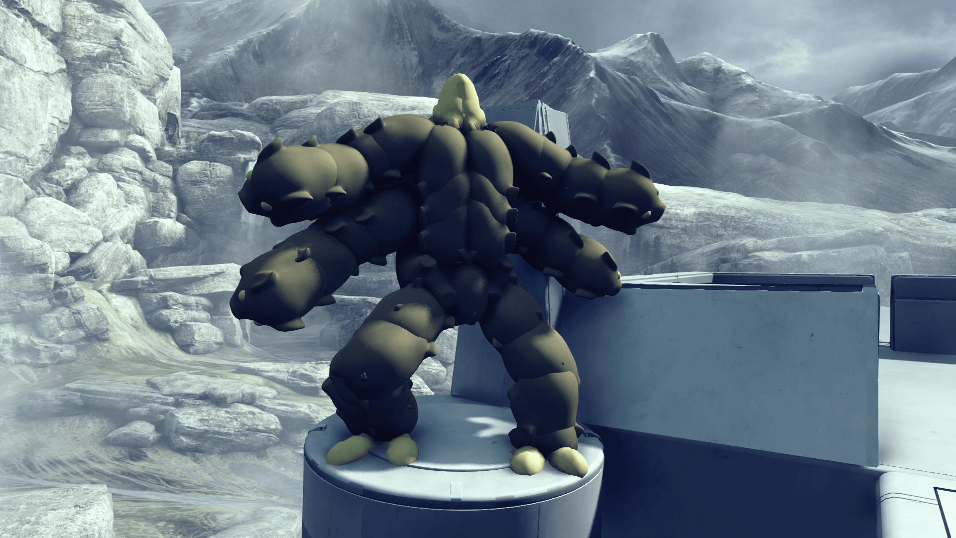 Hello, I have been busy with the Mortal Kombat map. I'm happy with all the map, there is some minor changes to be made to the dragons mouth, and I've now added Goro to Goro's layer. I was trying to make the 2 strange creatures on either side of the top of the pit, failed miserably with the lack of small pieces. Done a few small tests and it's been fun and had positive feedback so far but I do need to try to get a full lobby on it. I have 2 different versions of the gametype for testing one made from the original halo reach version. Luckily it's still on here <) really feels like something else with the ground pound extended slide and slowed down finishers It has helped to capture the essence of a fighting game. should accommodate a full lobby of 16? but gametype may have to be adjusted.