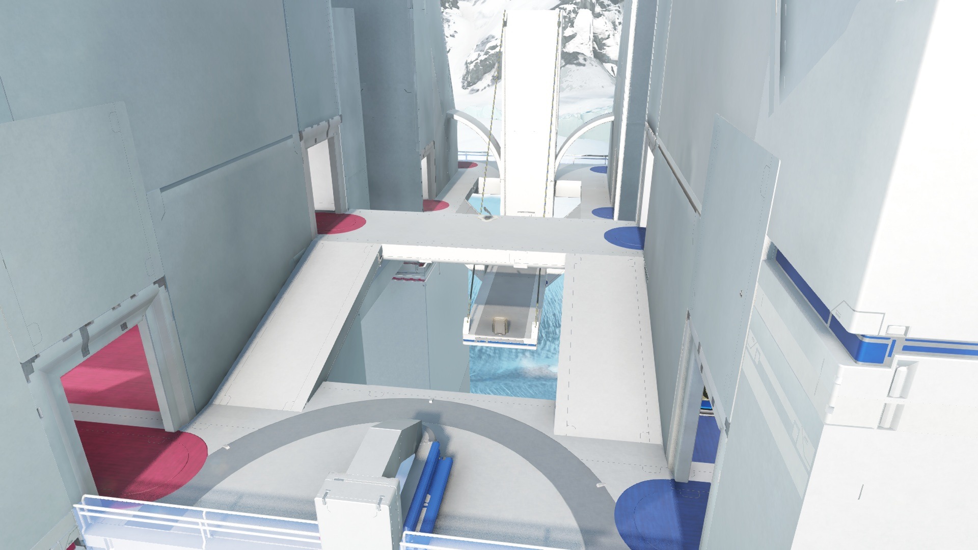 Glad to see this map get a visual update. The new aesthetics are nice, but a few things stick out: Did you intentionally leave the tertiary color on the blocks you're using as flooring? I think it looks better without that line visible I personally liked the old color scheme better than the red and blue you have now. I'm not sure how far along you were into updating the art, but the buildings could use some geometric sculpting to make them look less like flat walls and more like the side of a skyscraper or something. Or if that isn't what they're supposed to look like, i'd look into getting some billboards or something hanging off the side of them - anything to make them less flat.