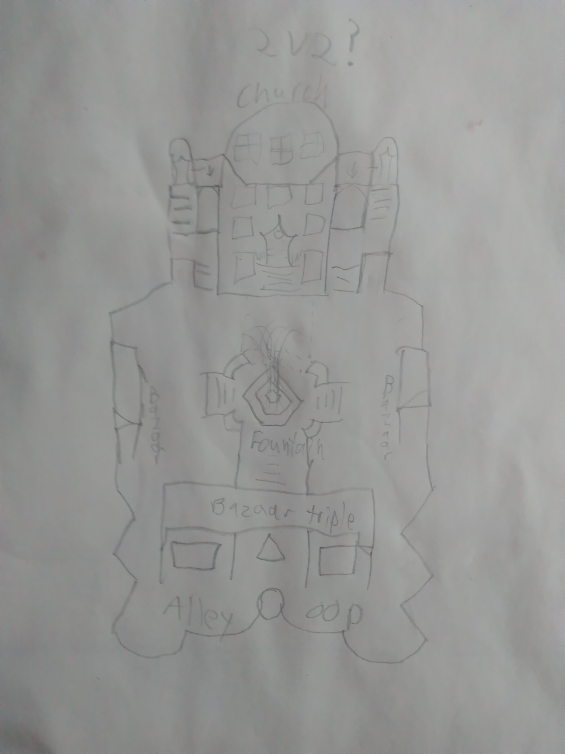 Quick Terribly drawn sketch of a Jerusalem inspired bazaar/Church combo I am also attempting to make the floor entirely out of dead bodies