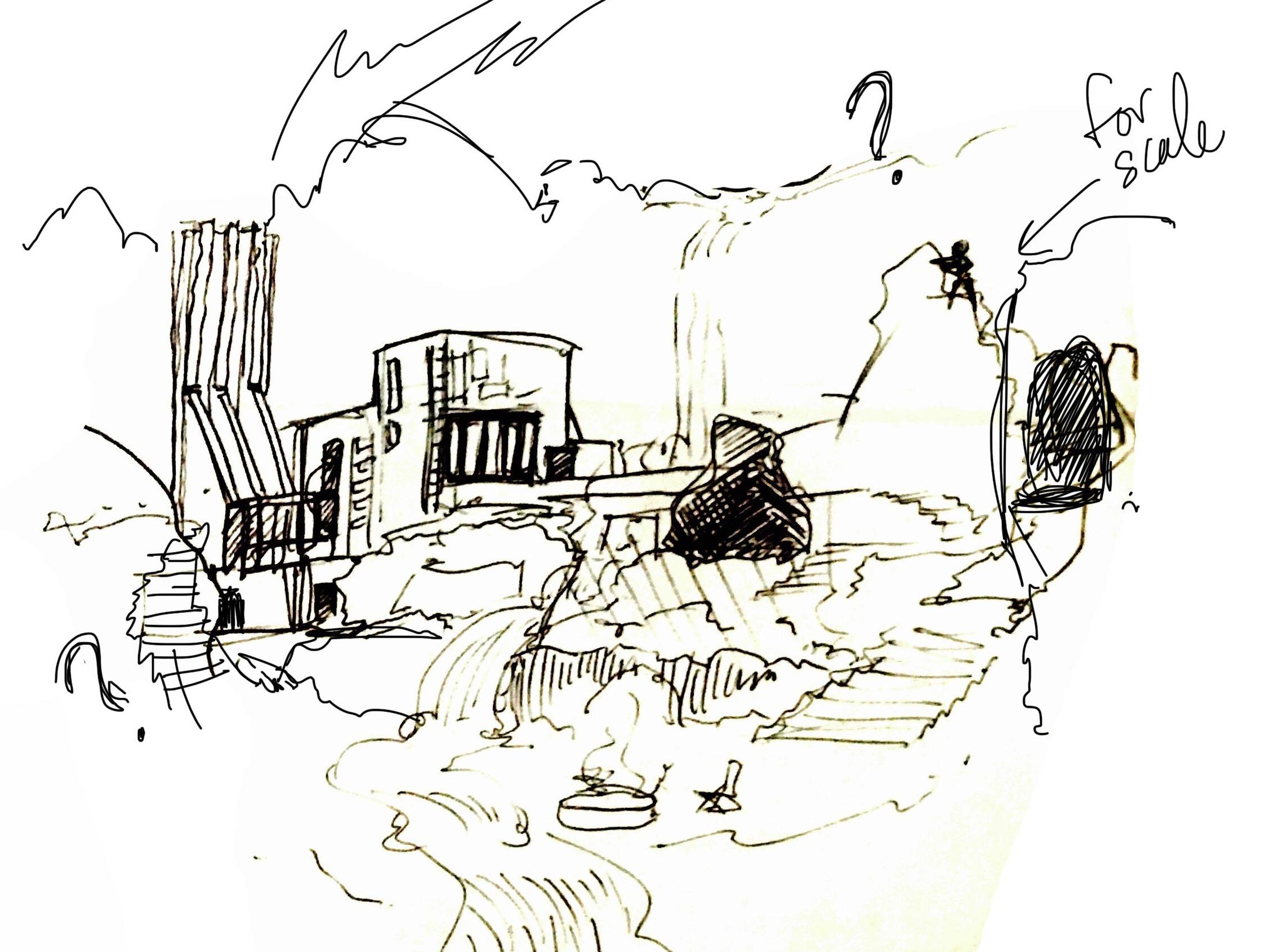 An admitted shortcoming, yes Like I said, I'm considering stunting that area, making it a much shearer cliff face, and putting some kind of incentive down there for adventurous playing Aesthetically I'm gonna go for a variation on the Sketchy look mixed with a Falling Water atmosphere, the building block/nature/decay of that combo really pierces my pecans right now