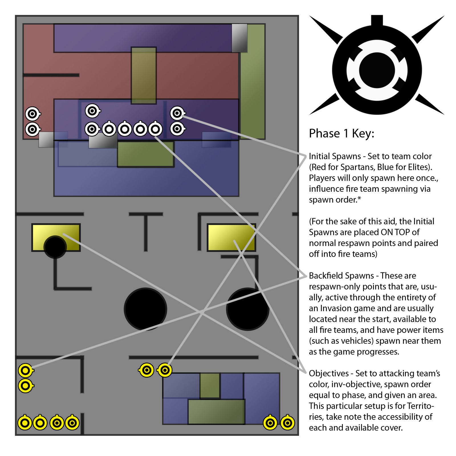 AND THIS ---> Also, the Spawning Aide will be, when added, located in a blank area, no map at all, just an organized grid to help you visualize what is required to have the spawns set up correctly. The Phase Arrangement images make it seem like I used Respawn Points, this is untrue, the Respawn Areas are simply depicted as a grouping of Respawn Points.